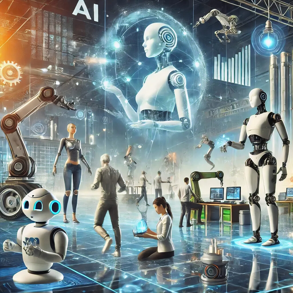 AI-enabled robots for agriculture, renewable energy inspection, construction optimization, and resource management.